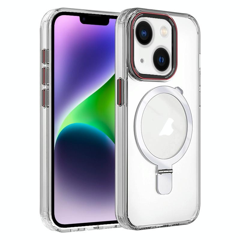 For iPhone 14 Crystal TPU Hybrid PC MagSafe Holder Phone Case(Transparent)
