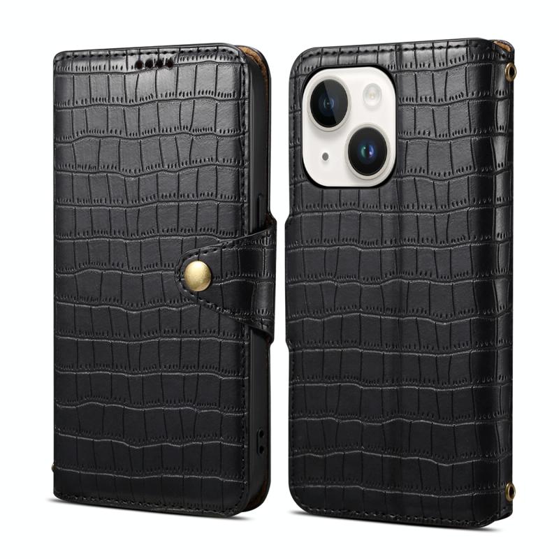 For iPhone 14 Denior Crocodile Texture Oil Edge Leather Phone Case(Black) (Denior)