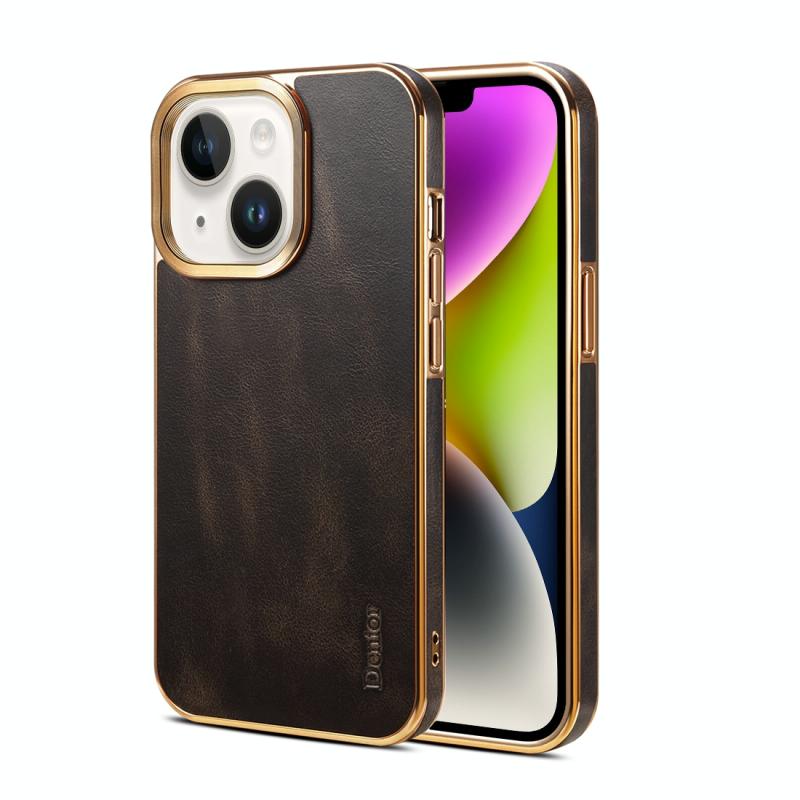 For iPhone 14 Denior Oil Wax Cowhide Plating Phone Case(Black) (Denior)