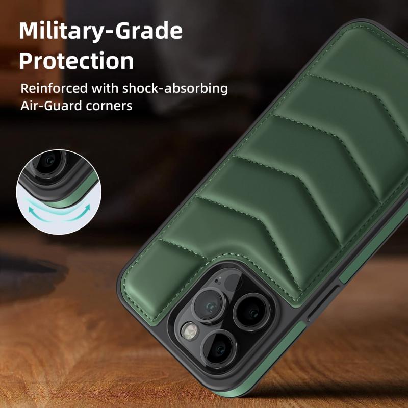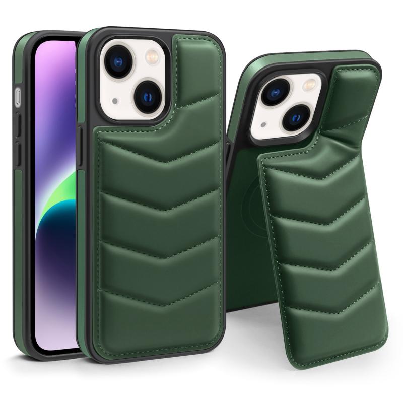 For iPhone 14 Down Jacket Card Bag Holder MagSafe Phone Case(Dark Green)