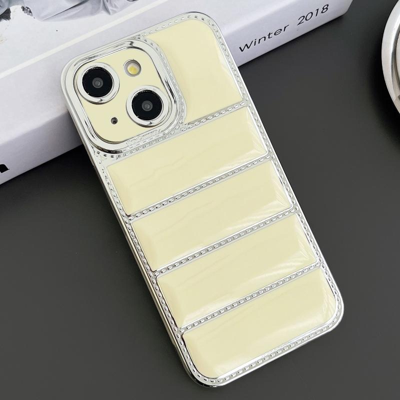 For iPhone 14 Electroplated Silver Edge Eiderdown TPU Phone Case(Yellow)