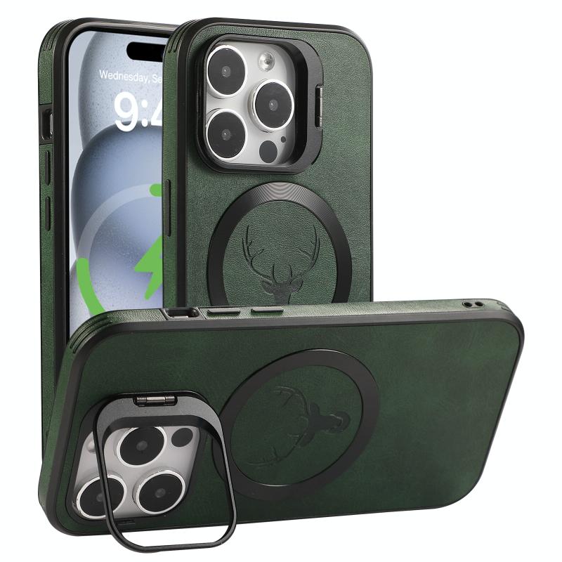 For iPhone 14 Elk Lens Holder Magsafe Shockproof Phone Case(Green)