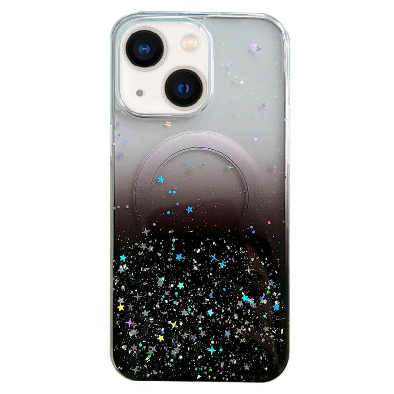 For iPhone 14 Glitter MagSafe Hybrid Clear TPU Phone Case(Black)