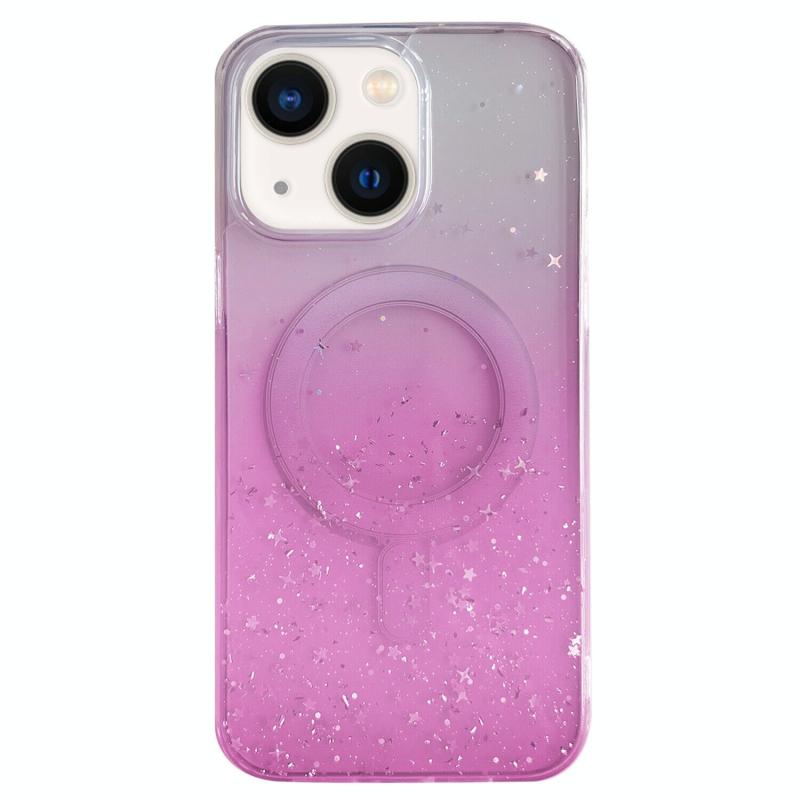 For iPhone 14 Glitter MagSafe Hybrid Clear TPU Phone Case(Pink)