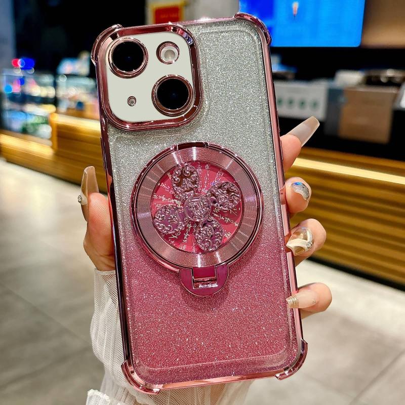 For iPhone 14 Gradient Glitter Spinning Top Holder Phone Case(Pink)
