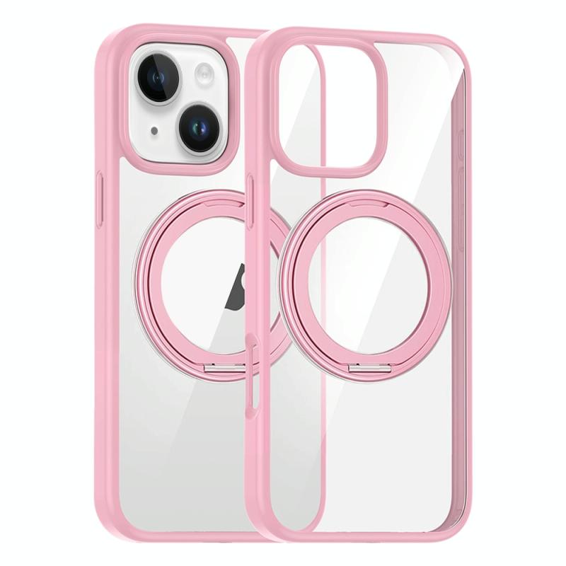 For iPhone 14 High Transparency 360 Degree Rotating Holder MagSafe Phone Case(Pink)