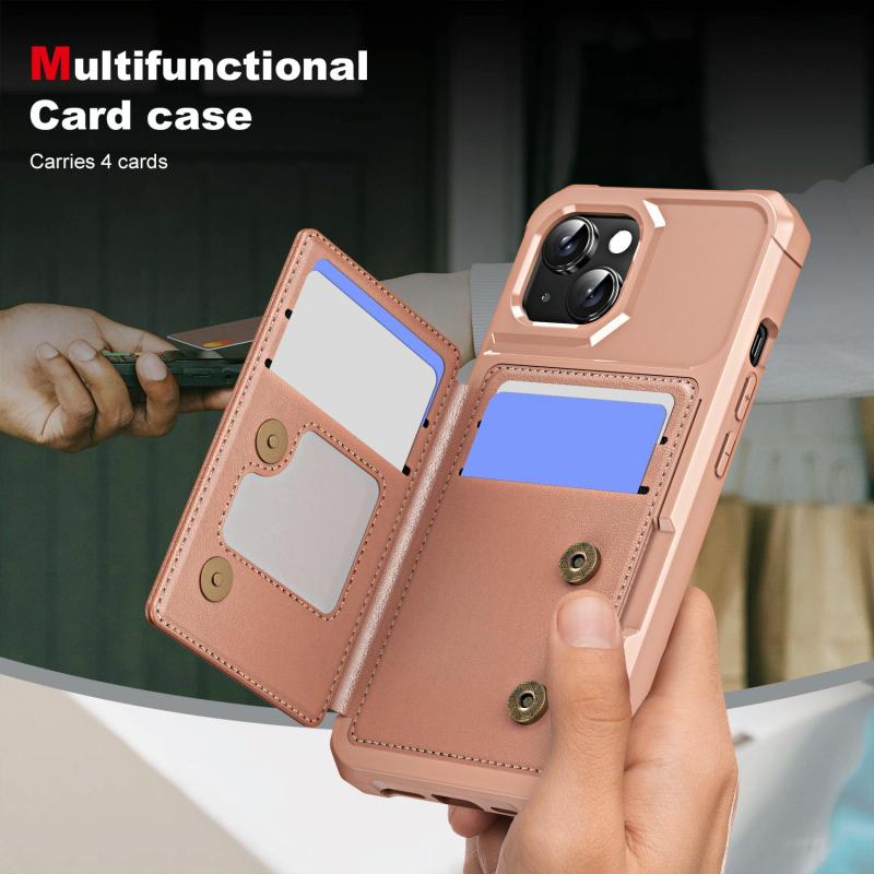 For iPhone 14 Horizontal Flip Card Bag Holder Leather Phone Case(Rose Gold)