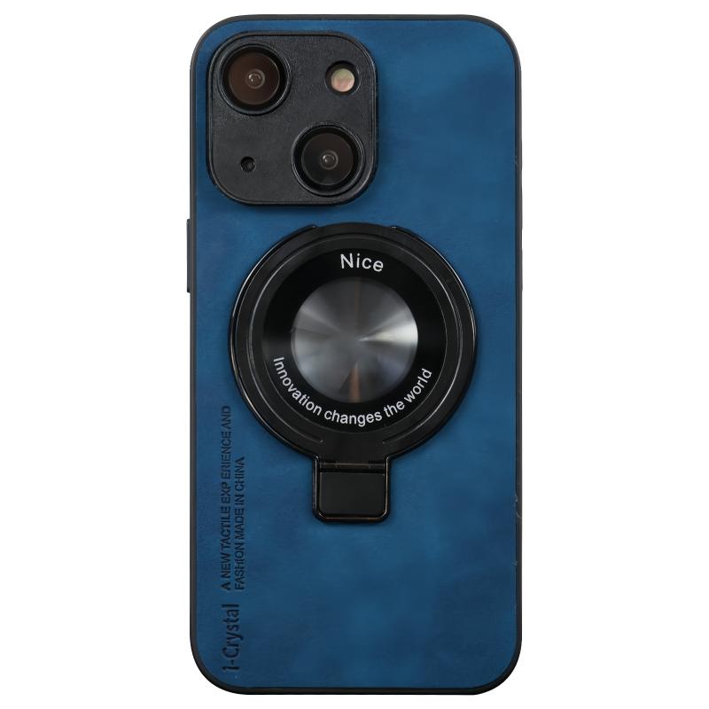 For iPhone 14 i.Crystal Lambskin Fulcrum Support Phone Case(Blue)