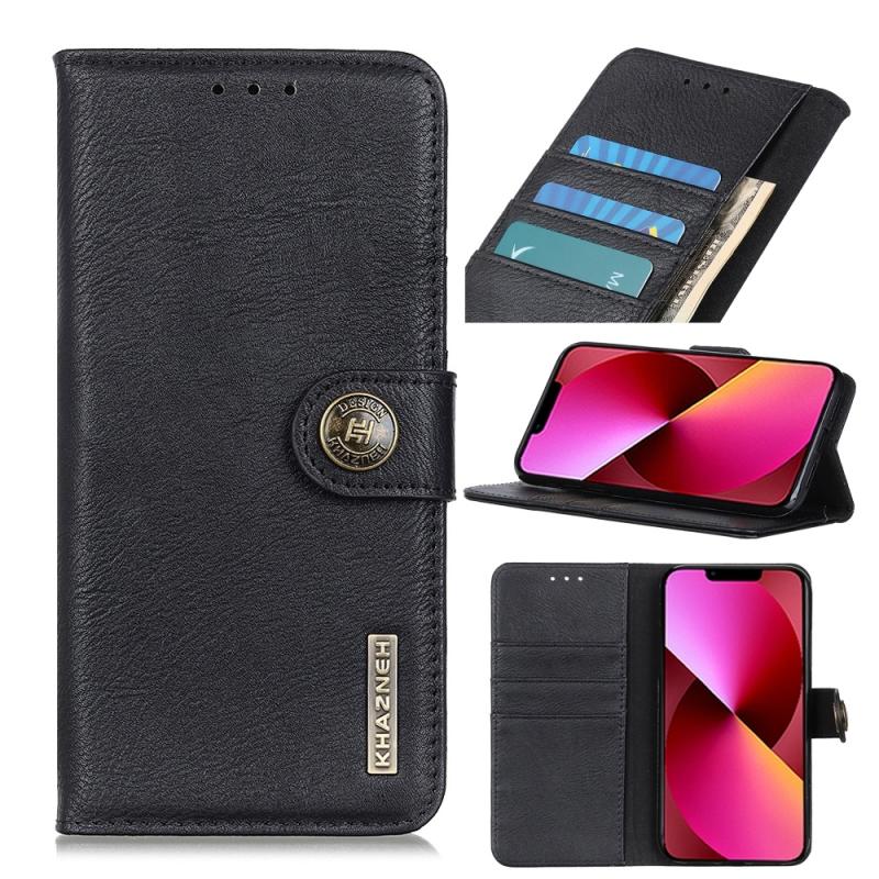For iPhone 14 KHAZNEH Cowhide Texture Horizontal Flip Leather Phone Case (Black)