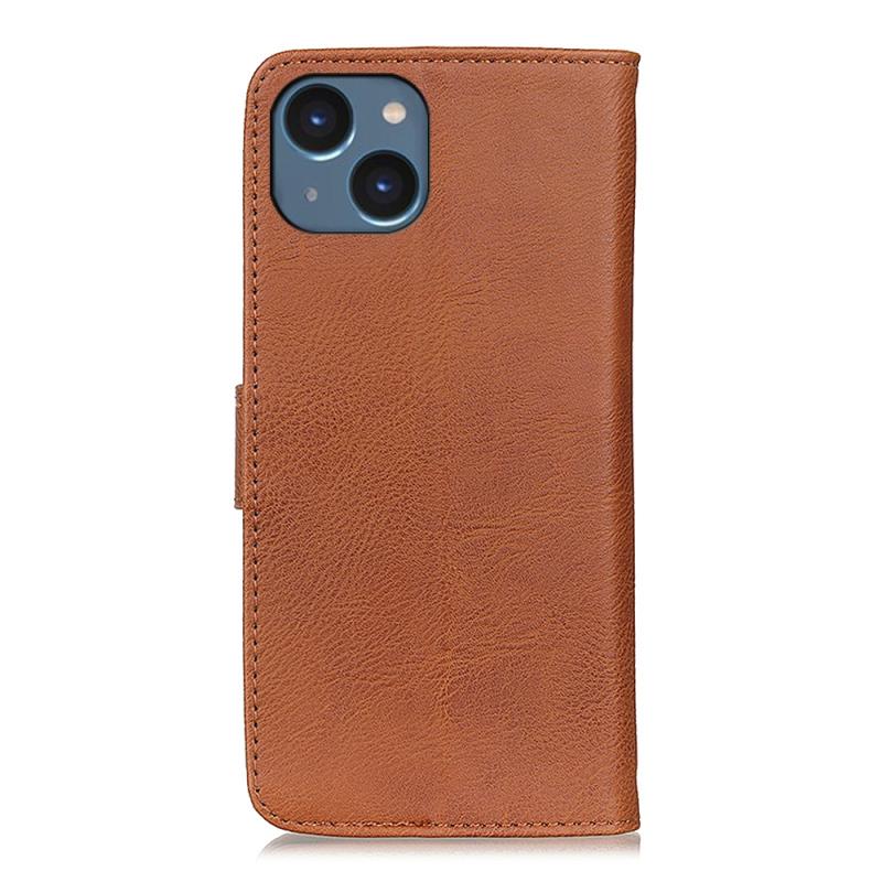 For iPhone 14 KHAZNEH Cowhide Texture Horizontal Flip Leather Phone Case (Brown)