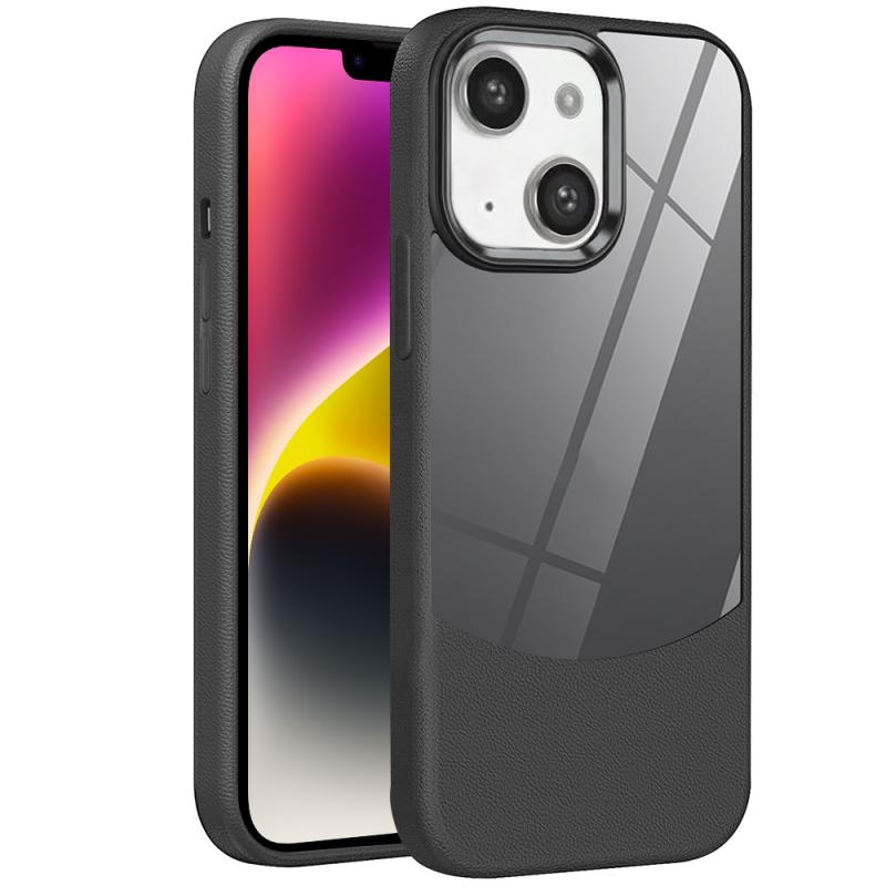 For iPhone 14 Litchi Texture TPU Hybrid Acrylic Phone Case(Black)