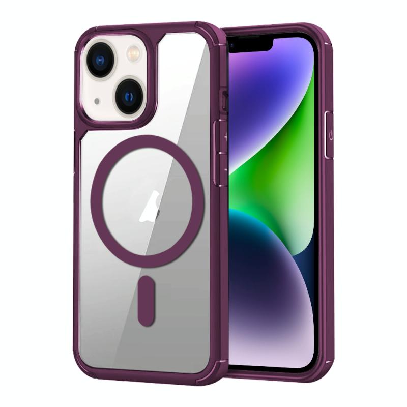 For iPhone 14 MagSafe Acrylic Hybrid TPU Phone Case(Wine Red)