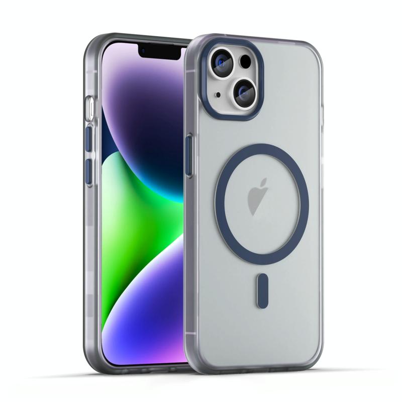For iPhone 14 MagSafe Frosted Translucent TPU + PC Full Coverage Phone Case(Dark Blue)