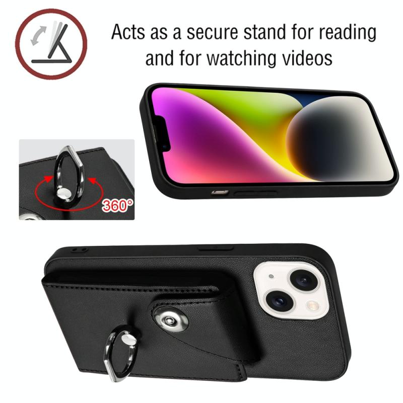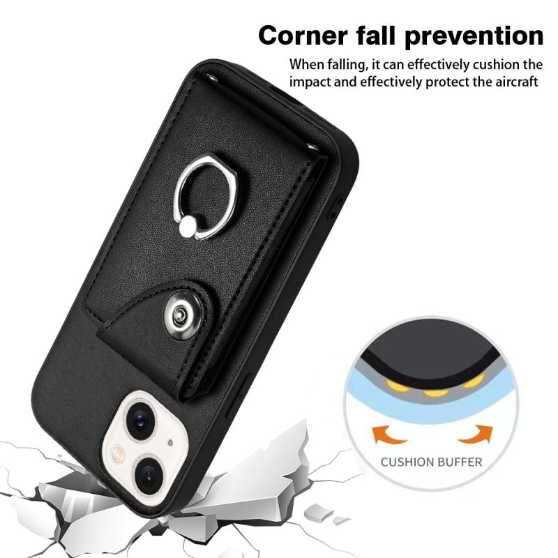 For iPhone 14 Organ Card Bag Ring Holder Phone Case(Black)
