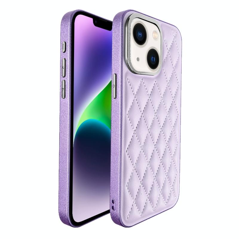 For iPhone 14 Plaid Series 9D Electroplated Phone Case(Purple)
