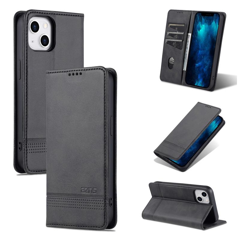 For iPhone 14 Plus AZNS Magnetic Calf Texture Flip Leather Phone Case (Black) (AZNS)