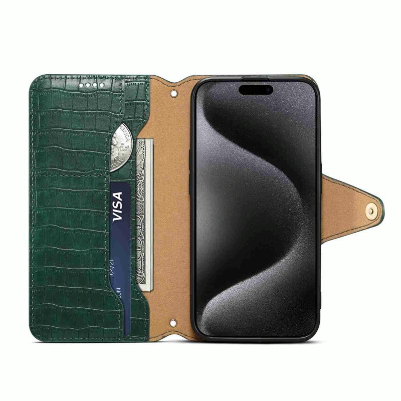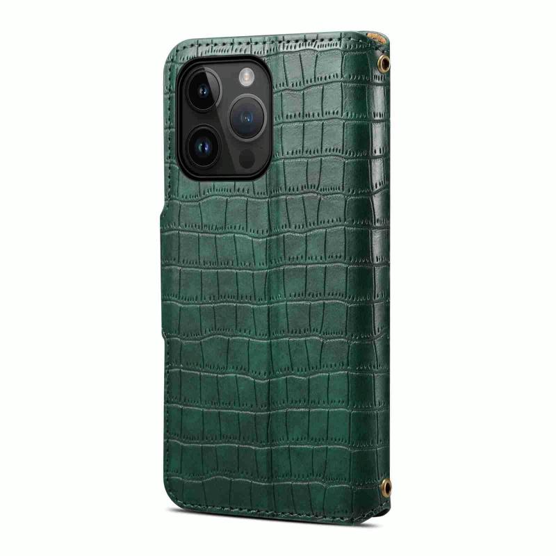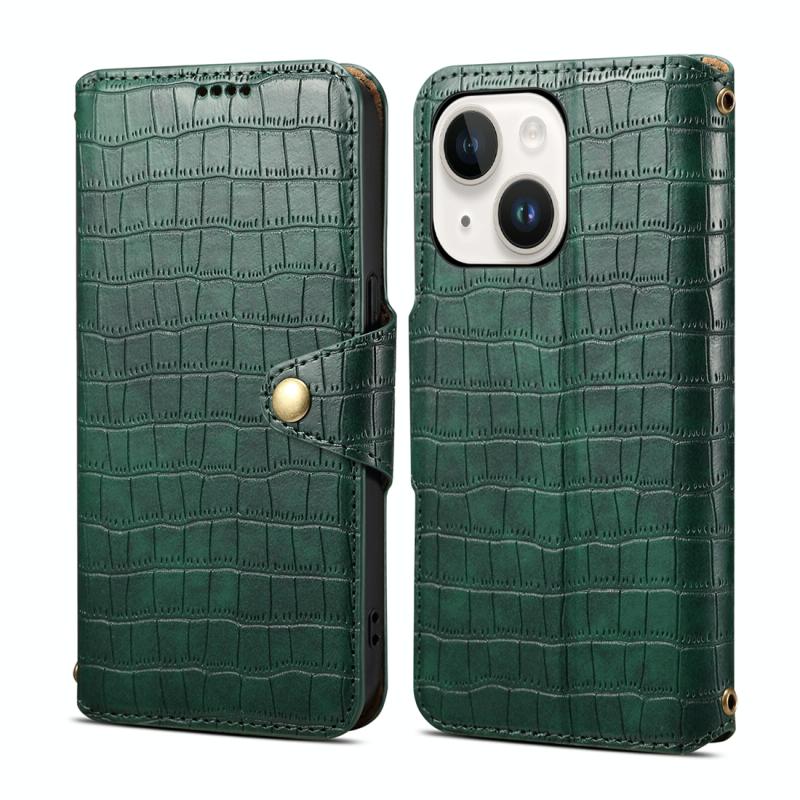 For iPhone 14 Plus Denior Crocodile Texture Oil Edge Leather Phone Case(Green) (Denior)