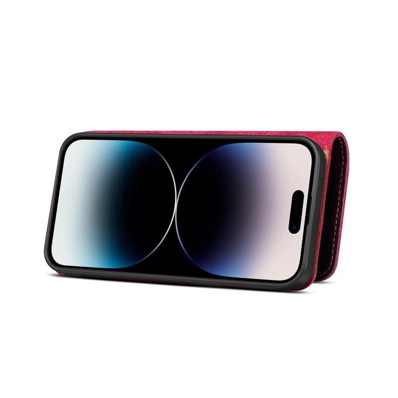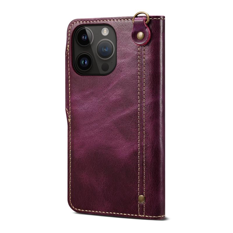 For iPhone 14 Plus Denior Oil Wax Cowhide Magnetic Button Genuine Leather Case (Purple) (Denior)