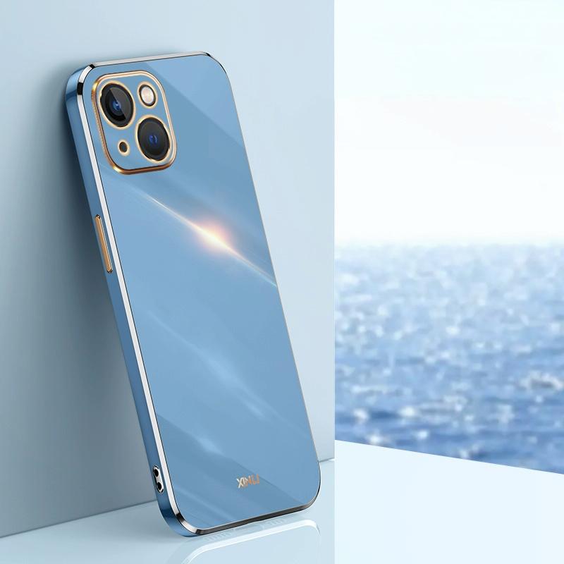 For iPhone 14 Plus XINLI Straight Edge 6D Electroplate TPU Phone Case(Celestial Blue) (XINLI)