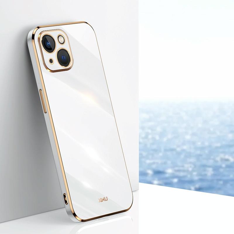 For iPhone 14 Plus XINLI Straight Edge 6D Electroplate TPU Phone Case(White) (XINLI)
