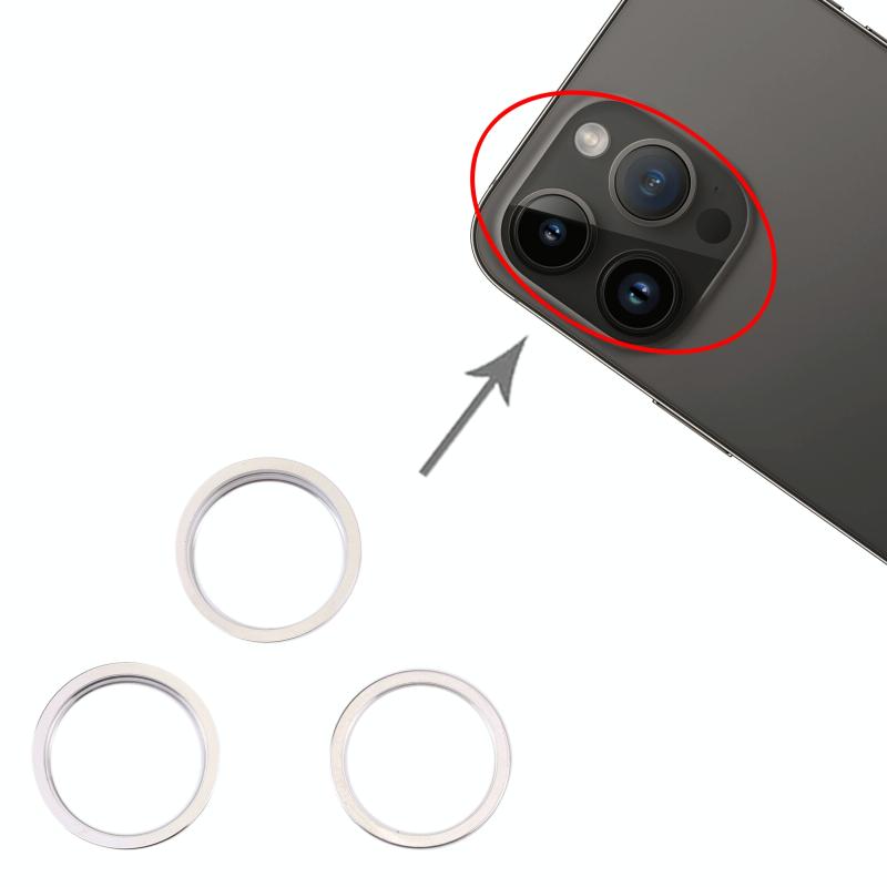 For iPhone 14 Pro 3PCS Rear Camera Glass Lens Metal Outside Protector Hoop Ring(Silver)