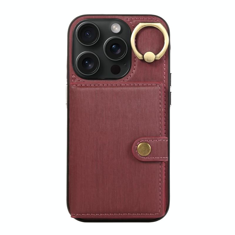 For iPhone 14 Pro Brushed Texture Wallet Ring Holder Phone Case(Wine Red)