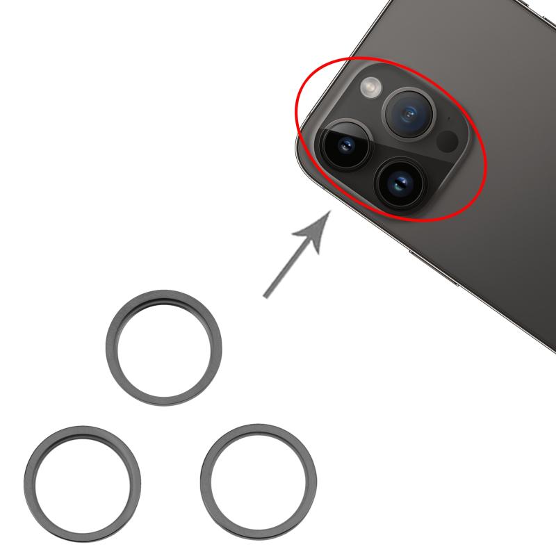 For iPhone 14 Pro Max 3PCS Rear Camera Glass Lens Metal Outside Protector Hoop Ring(Black)