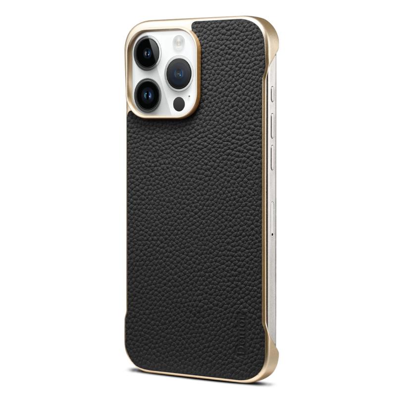 For iPhone 14 Pro Max Denior A20 Genuine Leather Litchi Texture MagSafe Frameless Phone Case(Black) (Denior)