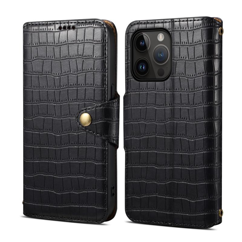 For iPhone 14 Pro Max Denior Crocodile Texture Oil Edge Leather Phone Case(Black) (Denior)