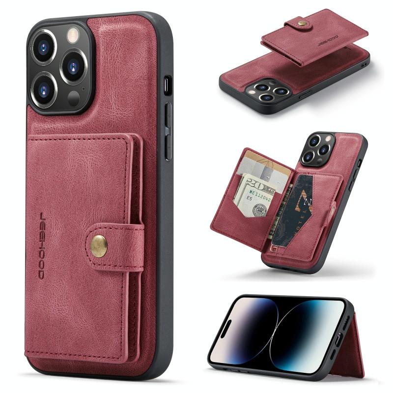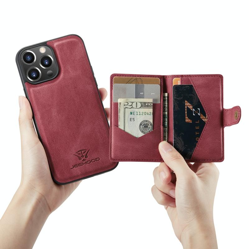 For iPhone 14 Pro Max JEEHOOD Retro Magnetic Detachable Leather Phone Case (Red) (JEEHOOD)