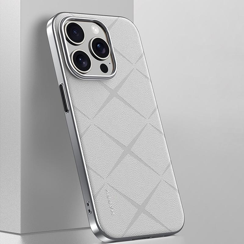 For iPhone 14 Pro Max Plain Leather PC Phone Case(White)