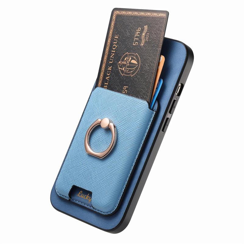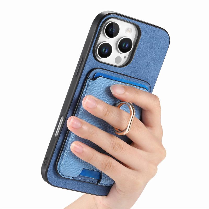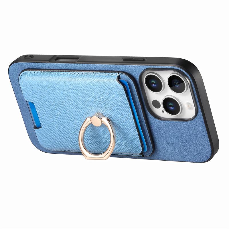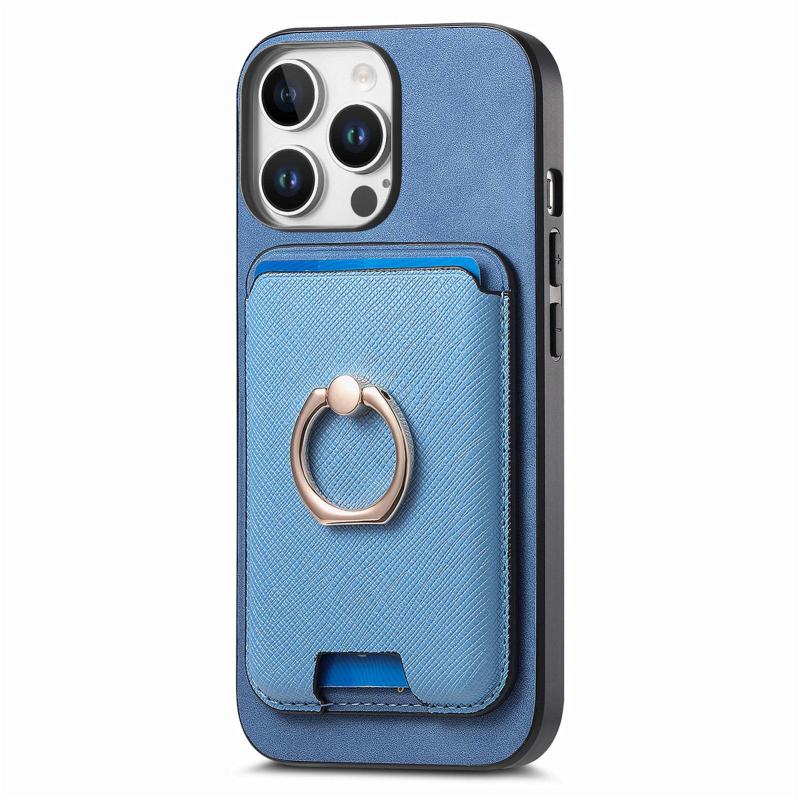 For iPhone 14 Pro Retro Cross Leather Card Bag MagSafe Phone Case(Blue)