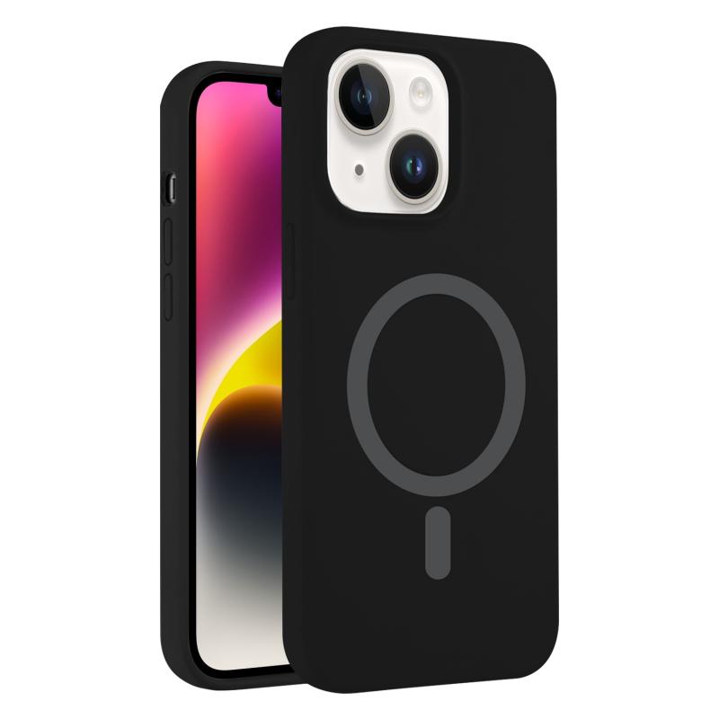 For iPhone 14 Pure Color Liquid Silicone MagSafe Phone Case(Black)