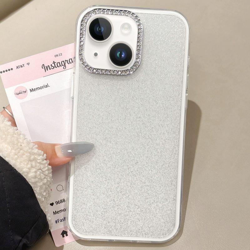 7. The camera frame is embedded with rhinestones, enhancing the aesthetic appeal while effectively protecting the lens from scratches.