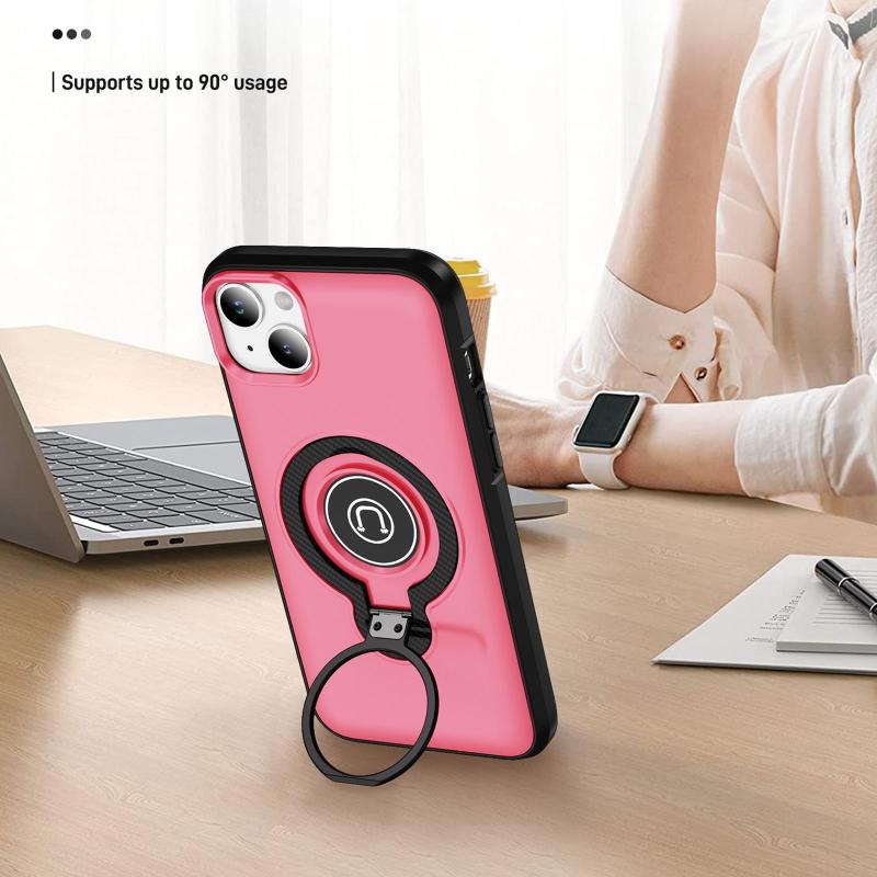 For iPhone 14 Ring Holder Magnetic Phone Case(Bright Pink)