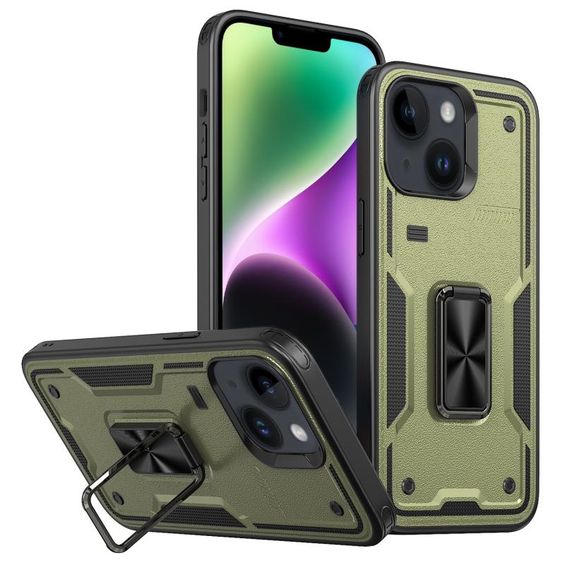 For iPhone 14 Ring Holder PC Hybrid TPU Phone Case(Olive Green)