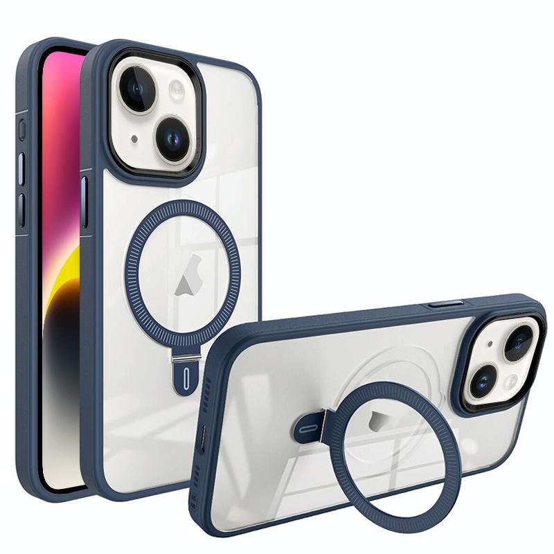 For iPhone 14 Shield Armor MagSafe Holder Phone Case(Royal Blue)