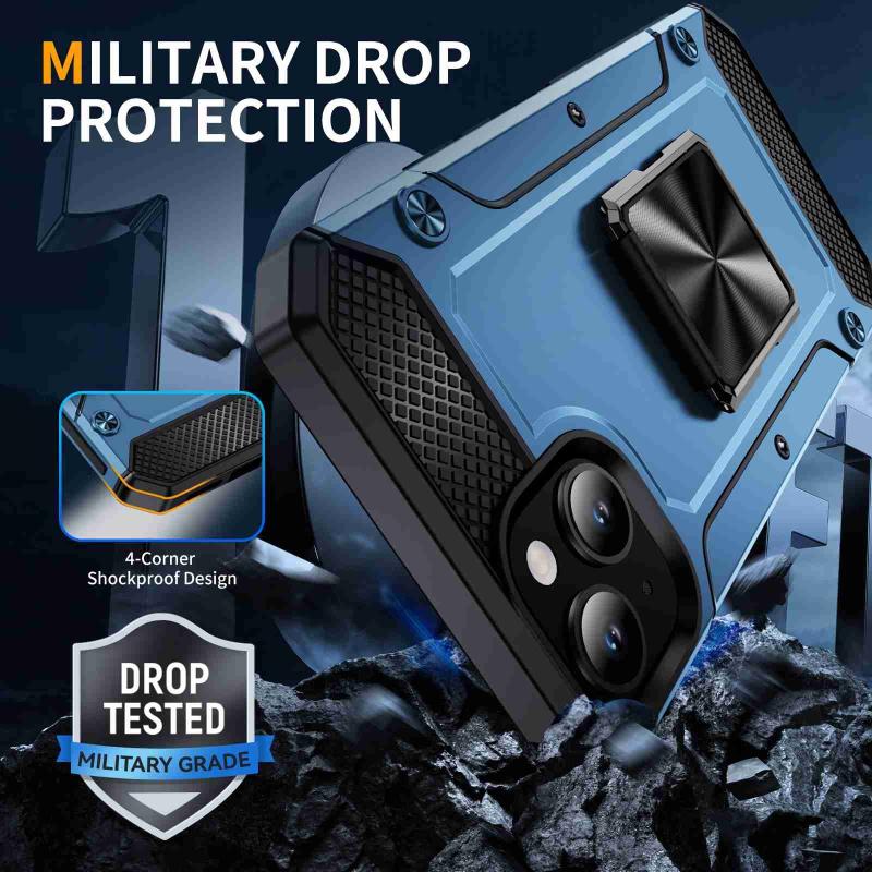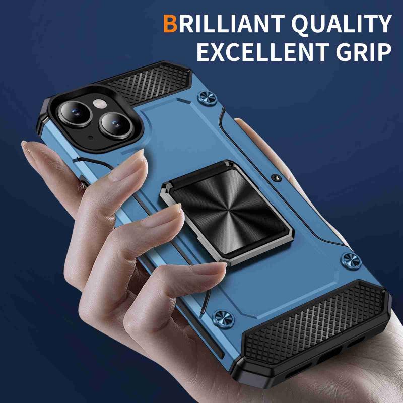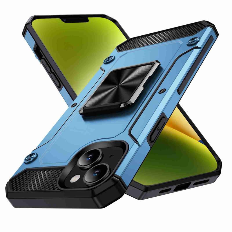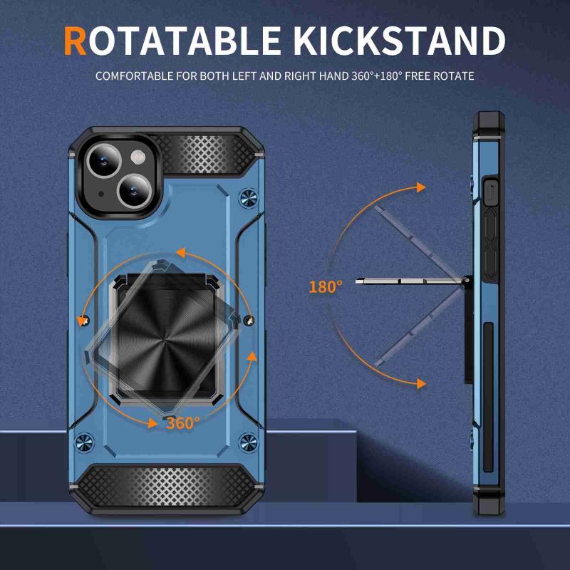 For iPhone 14 Shockproof Metal Holder Phone Case(Navy Blue)