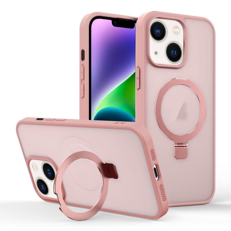 For iPhone 14 Skin-feel Ring MagSafe Holder Phone Case(Pink)