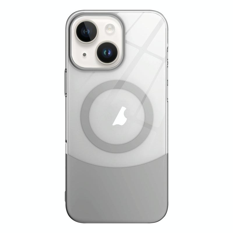 For iPhone 14 Slim Color Contrast MagSafe PC Transparent Phone Case(Grey)