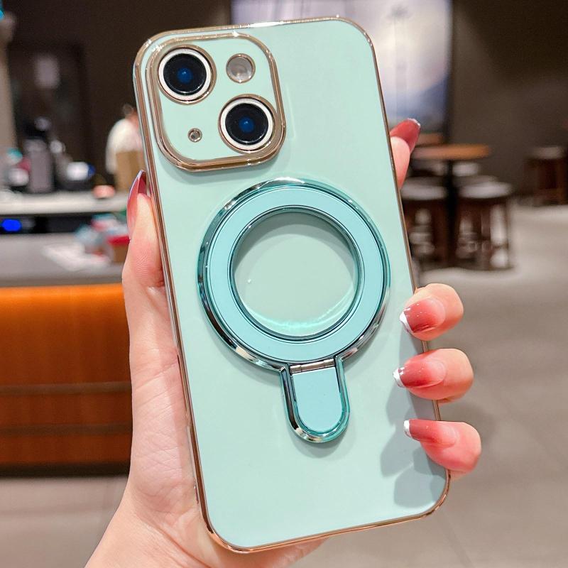 For iPhone 14 Solid Color Electroplated Metal Holder Phone Case(Light Green)