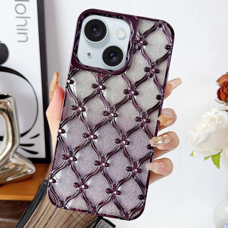 For iPhone 14 Star Flower Electroplated TPU Phone Case with Gradient Glitter Paper(Purple)