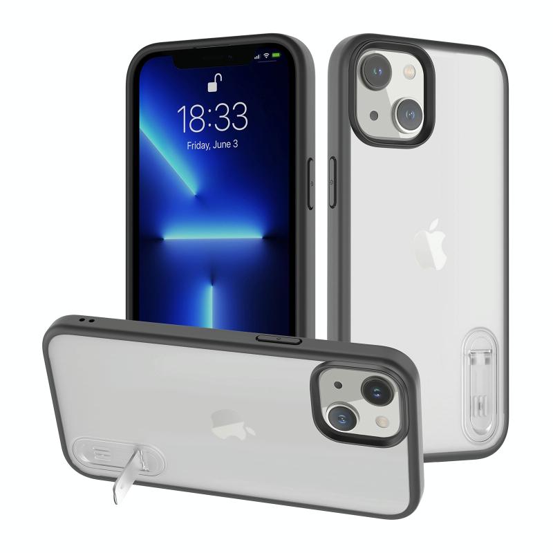 For iPhone 14 Terminator Shockproof Phone Case with Holder(Transparent Black)