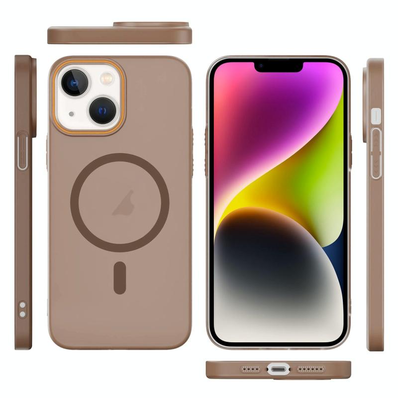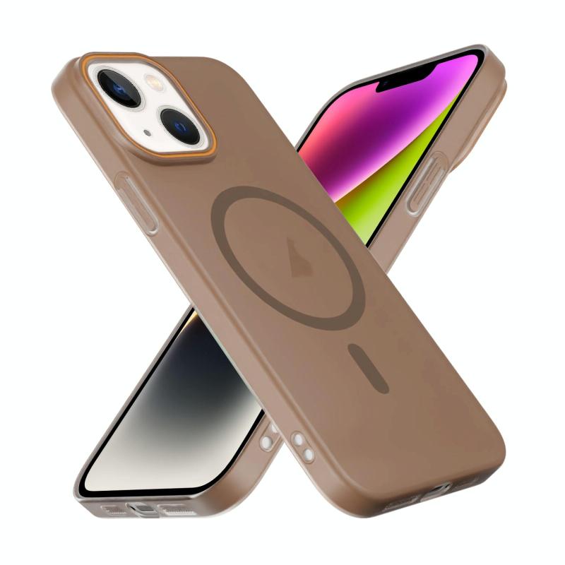 For iPhone 14 Translucent Frosted Skin PC MagSafe Phone Case(Desert Gold)