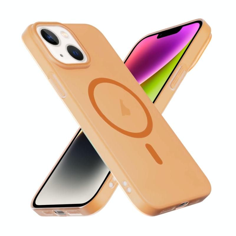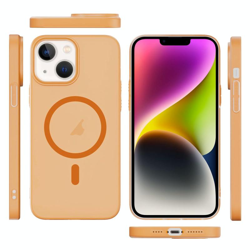 For iPhone 14 Translucent Frosted Skin PC MagSafe Phone Case(Orange)