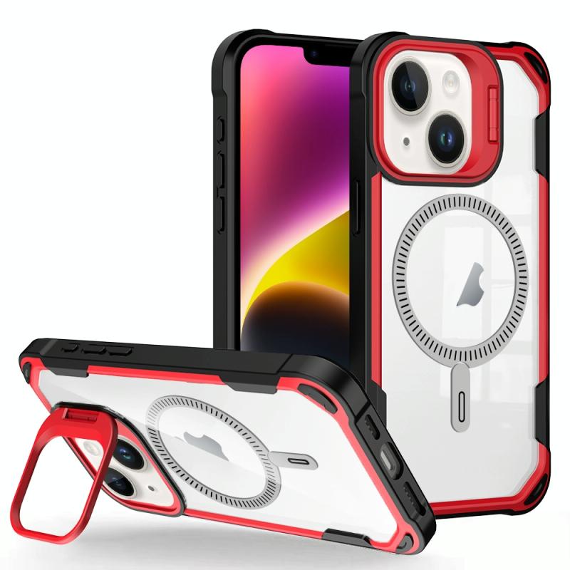 For iPhone 14 Transparent Acrylic MagSafe Lens Holder Phone Case(Red)
