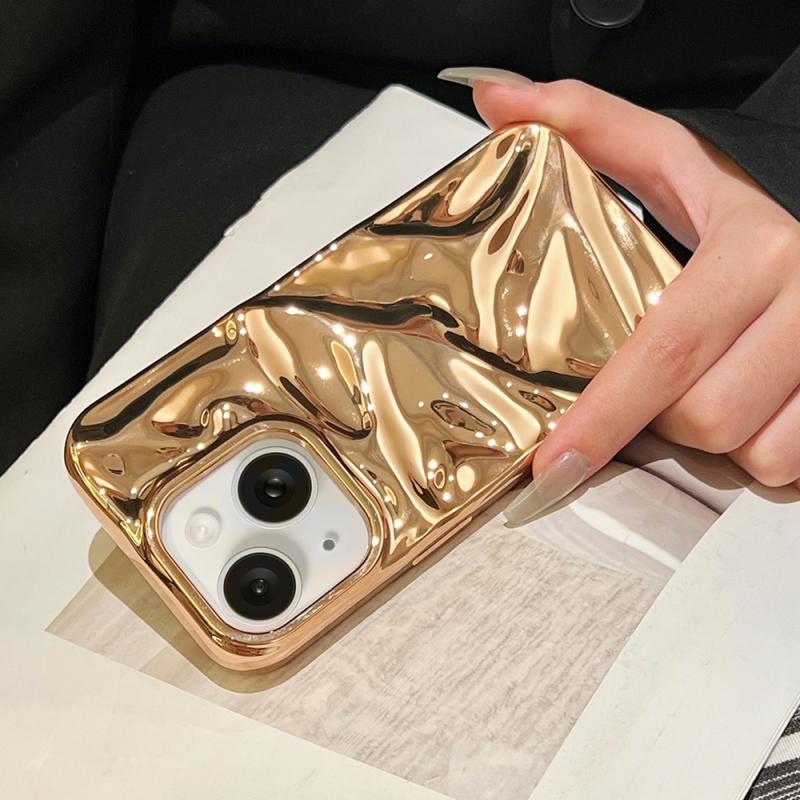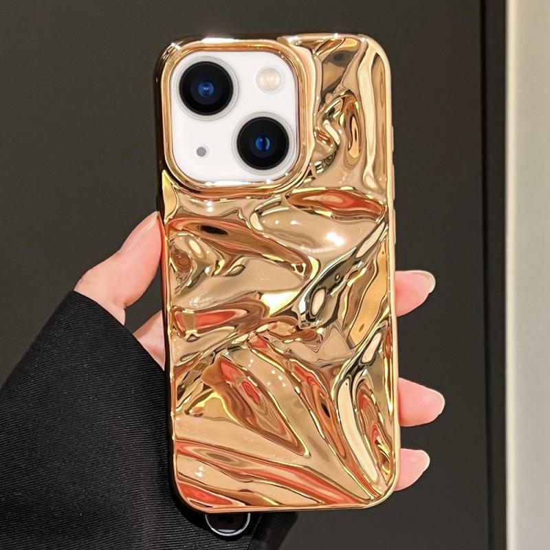 For iPhone 14 Water Ripple Electroplating Paint TPU Phone Case(Bright Gold)