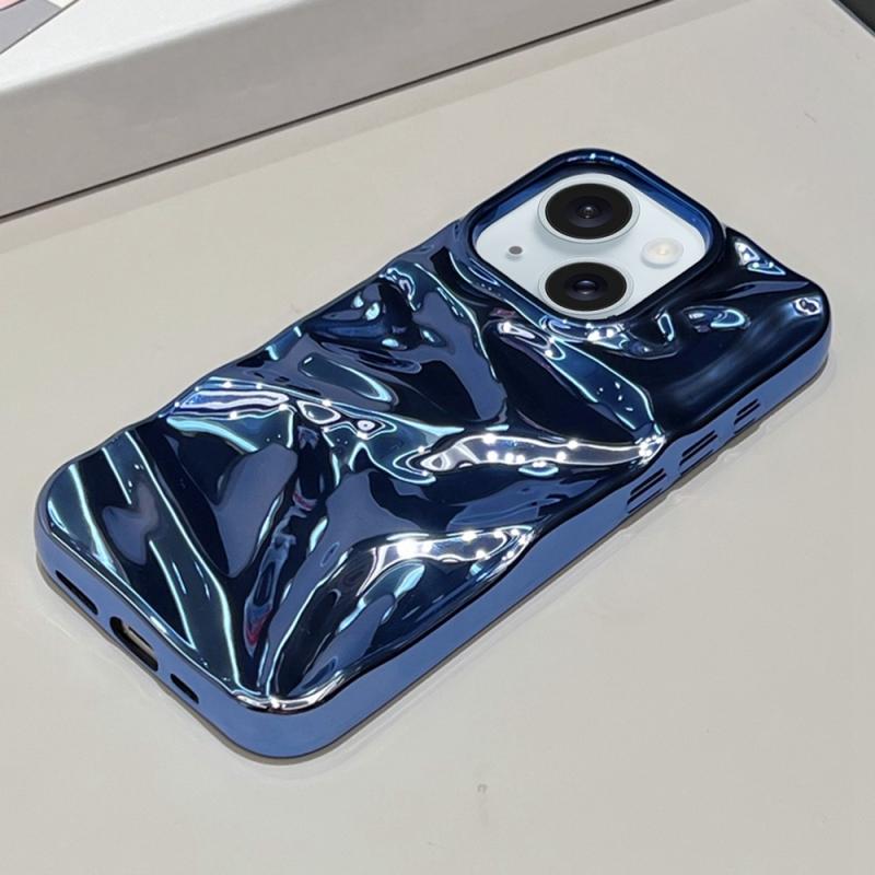 For iPhone 14 Water Ripple Electroplating Paint TPU Phone Case(Dark Blue)