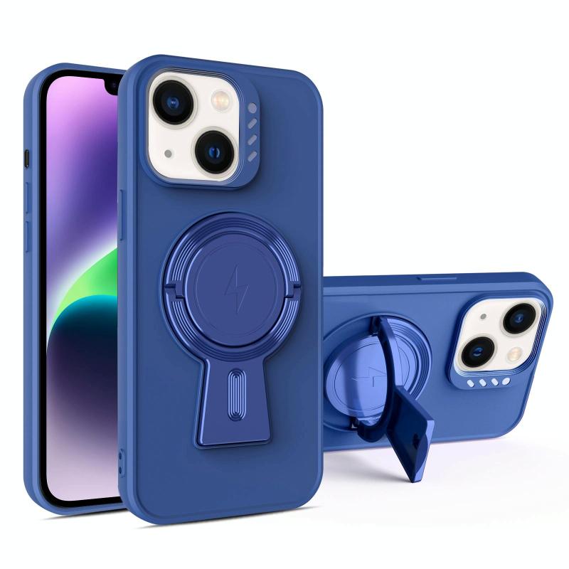 For iPhone 14 Y-shape Holder MagSafe Rugged Shockproof Phone Case(Royal Blue)