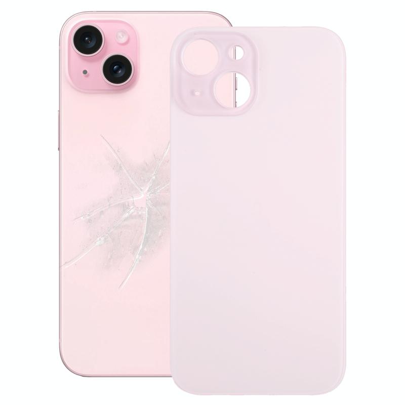 For iPhone 15 Easy Replacement Big Camera Hole Glass Back Battery Cover(Pink)
